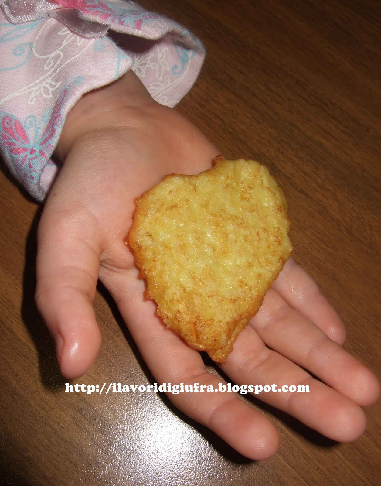 I give the recipe is a cauliflower, 2 eggs, grated parmesan, a few tablespoons of flour, salt. Boil the cauliflower well you can then crush with a potato masher in a bowl put the egg, Parmesan, flour and a little salt, stir and add the puree, adding more flour if needed to be soft, you do the heat well 'oil in a frying pan, using a spoon, drops heaps of hot oil and brown them, I know .. but is a fry is very good !!!!! sometimes you can do! and see how it came a heart-shaped ... ♥ guess who it ate??